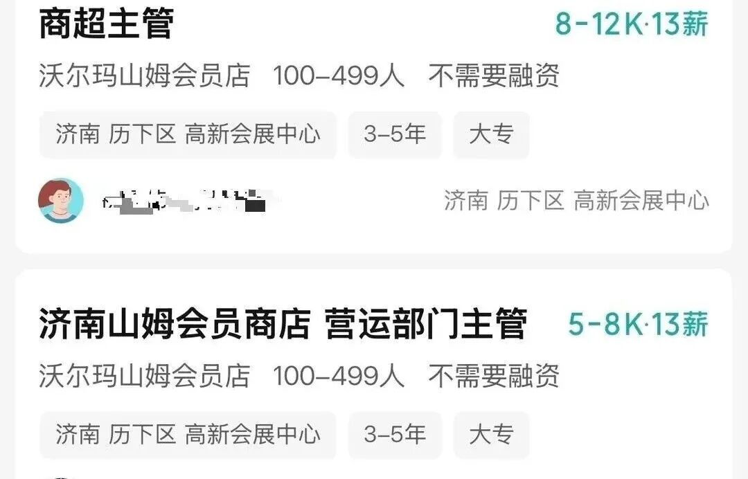此外,济南山姆会员商店也已启动招聘流程,发布商超主管和营运部门主管两个工作岗位招聘信息。
